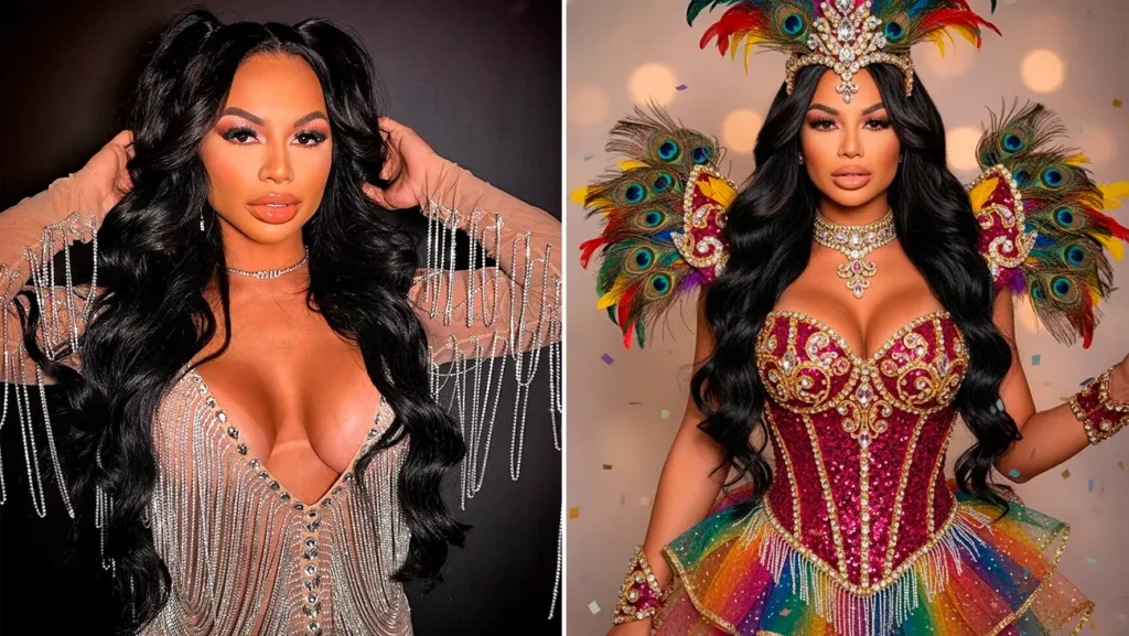Foi também nesse momento que ela abandonou o tapa-sexo clássico e abraçou de vez a nanofantasia. A peça, feita em tecido que imita a pele, foi pensada para garantir conforto, liberdade de movimento e impacto visual máximo — três critérios que a IA, curiosamente, não conseguiu conciliar.