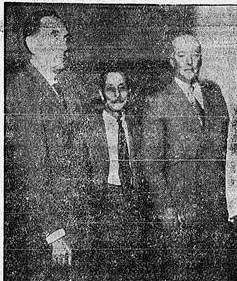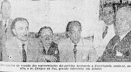 Pedro, o primeiro sentado da esquerda para a direita, num evento Pró-Anistia. Fonte: Tribuna Popular, 20 de maio de 1945, p. 3.
