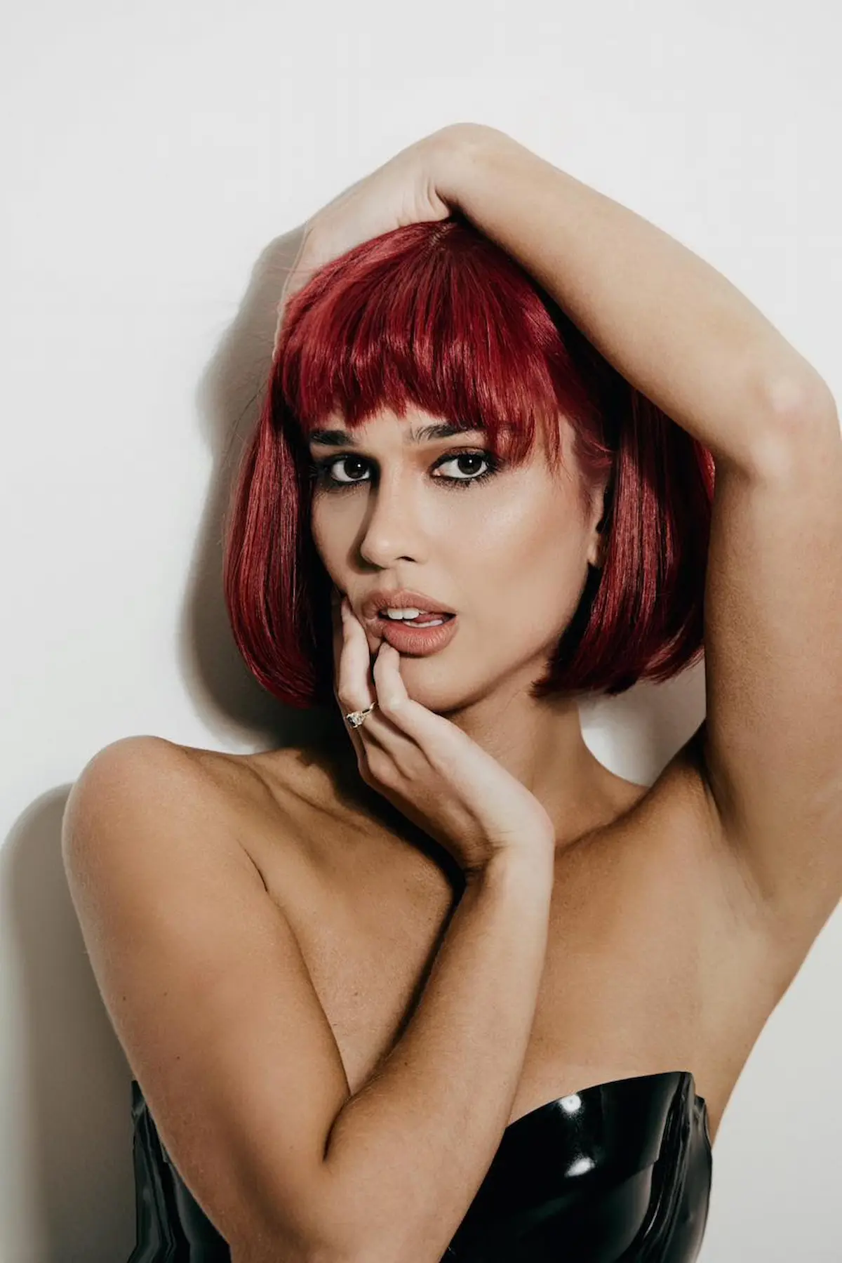 O visual de Theresa Fonseca não foi uma fantasia comum. Sob o olhar estratégico do stylist Pedro Sales, a atriz usou uma peça assinada pelo designer britânico Atsuko Kudo, autoridade mundial em moda látex sob medida (favorito de estrelas como Beyoncé e Kim Kardashian). O material, que exige precisão técnica no ajuste ao corpo, reforçou a silhueta da atriz e imprimiu uma sofisticação sombria que contrastava com o colorido das escolas de samba. A beleza, assinada por Luciana Rech, completou o visual “felino” com traços minimalistas e marcantes.