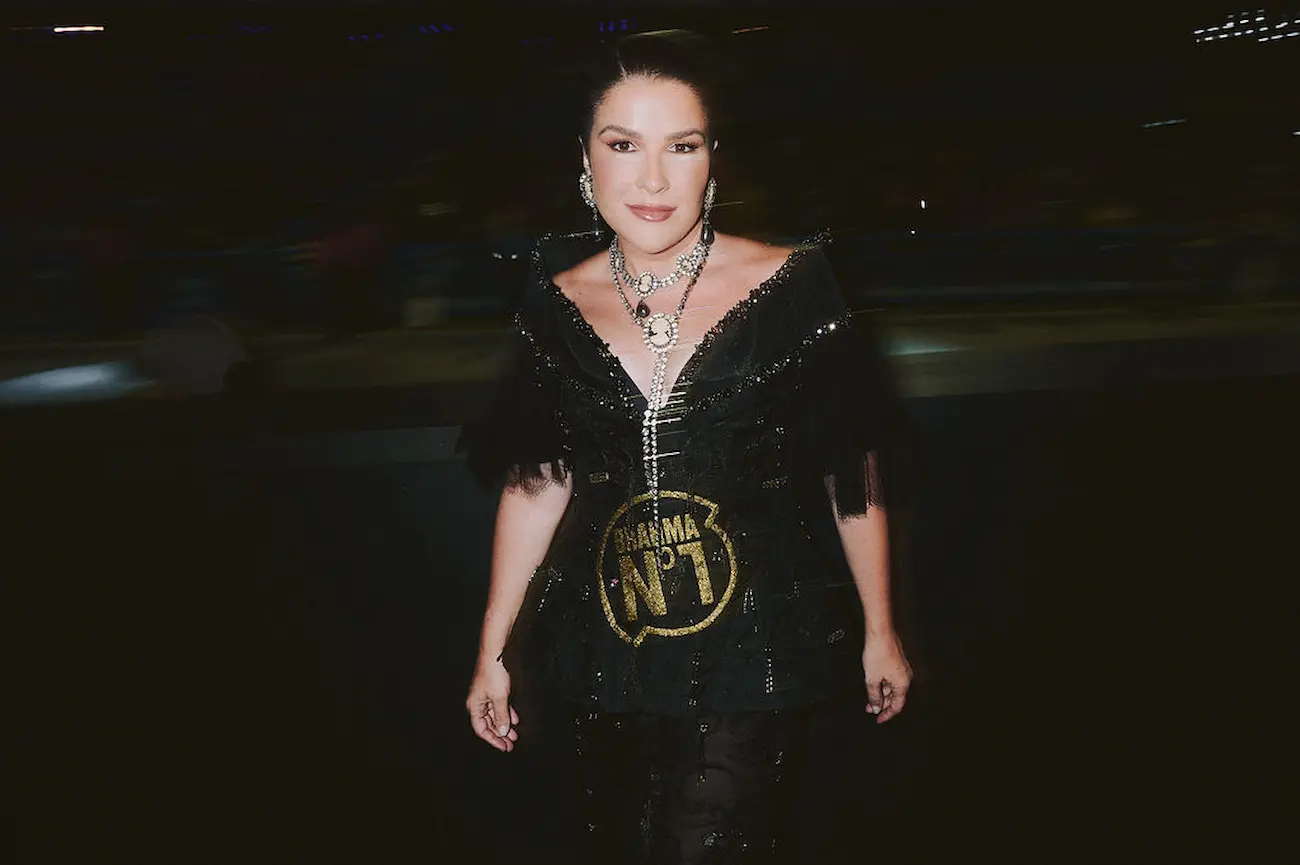 O conjunto, composto por calça e corset em organza, é um testemunho da excelência do design autoral brasileiro. Helô Rocha empregou bordados de linha e pedraria de forma minuciosa, criando uma peça que valoriza a silhueta sem recorrer a clichês de exposição. A estrutura da roupa, com o colo aberto e a pala bem definida, promove um equilíbrio entre a autoridade da empresária e a delicadeza do trabalho artesanal. Para Ju Ferraz, o ato de vestir-se para a Sapucaí torna-se uma extensão de sua atuação profissional: uma declaração de liderança que utiliza a moda como ferramenta de comunicação não-verbal e reafirmação de identidade.