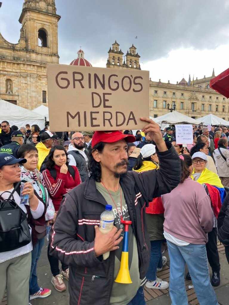 Manifestantes ocuparam vias centrais de cidades colombianas após chamado do presidente Gustavo Petro. O objetivo declarado foi rejeitar declarações de Donald Trump e denunciar tentativas de interferência estrangeira na soberania do país. Cartazes, palavras de ordem e bandeiras nacionais marcaram os atos.