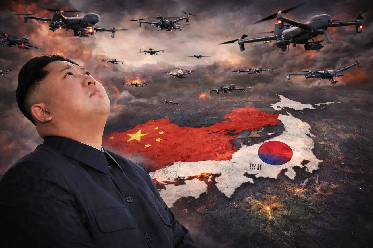 A península coreana e o arquipélago japonês estão prestes a descobrir que o céu do século XXI não pertence mais aos caríssimos caças de quinta geração, mas aos enxames de “ferro-velho tecnológico” que Kim Jong Un está aprendendo a pilotar. Enquanto o mundo observa o quarto ano da invasão russa na Ucrânia, Pyongyang atua como um estagiário aplicado de Vladimir Putin, coletando destroços de drones ucranianos e manuais russos para construir uma força aérea de baixo custo. Como na tática da “morte por mil cortes”, a Coreia do Norte não precisa de mísseis intercontinentais para paralisar Seul ou Tóquio; basta uma nuvem de drones suicidas que custam menos que um carro popular, mas carregam o potencial de apagar redes elétricas e semear o terror em áreas civis.