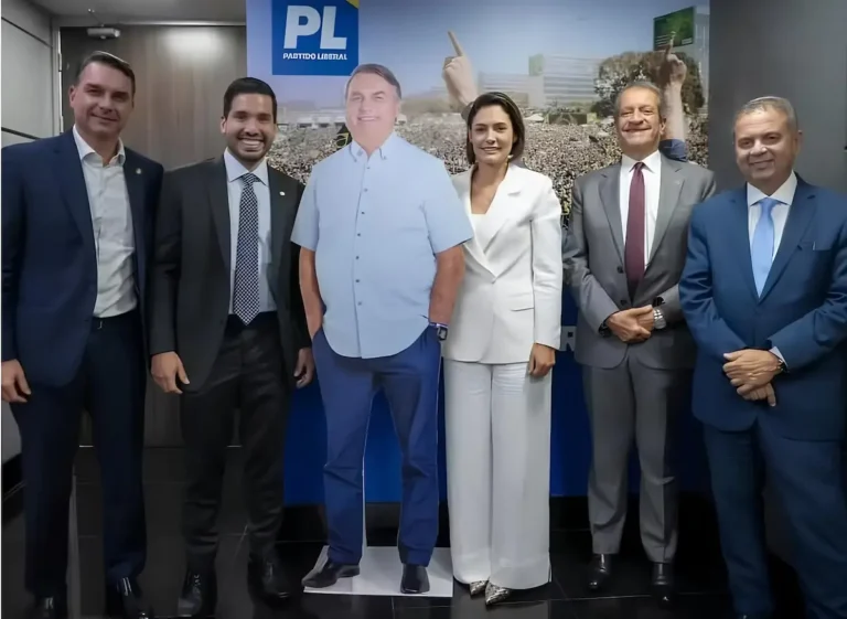 Michelle Bolsonaro voltou ao centro das atenções ao publicar uma foto ao lado de um boneco em tamanho real do ex-presidente Jair Bolsonaro, após a reunião do PL que suspendeu a aliança com Ciro Gomes (PSDB) no Ceará. Estiveram presentes Michelle, o senador Flávio Bolsonaro (PL-RJ), o deputado André Fernandes (PL-CE) e o presidente nacional do partido, Valdemar Costa Neto.