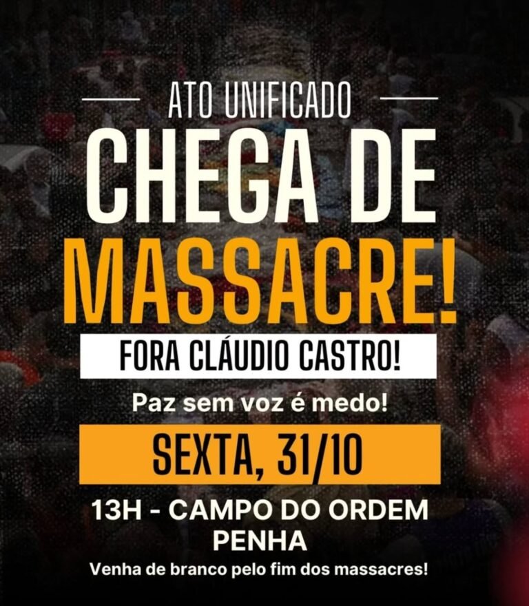 Na esteira da tragédia da Operação Contenção, que resultou na morte de mais de 120 pessoas em comunidades do Complexo do Alemão e da Penha, uma convocação unificada reúne mais de cem organizações para um ato público em solidariedade às famílias das vítimas e de repúdio à política de massacres e chacinas promovidas nas favelas do Rio de Janeiro.